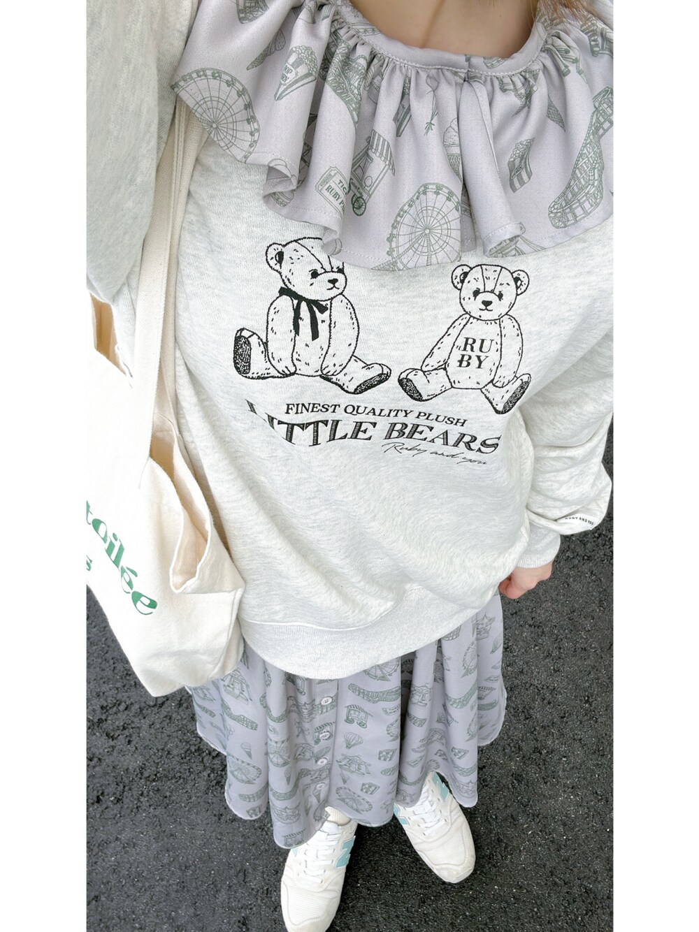 me.maのスウェット「ベアプリントトレーナー」を使ったコーディネート