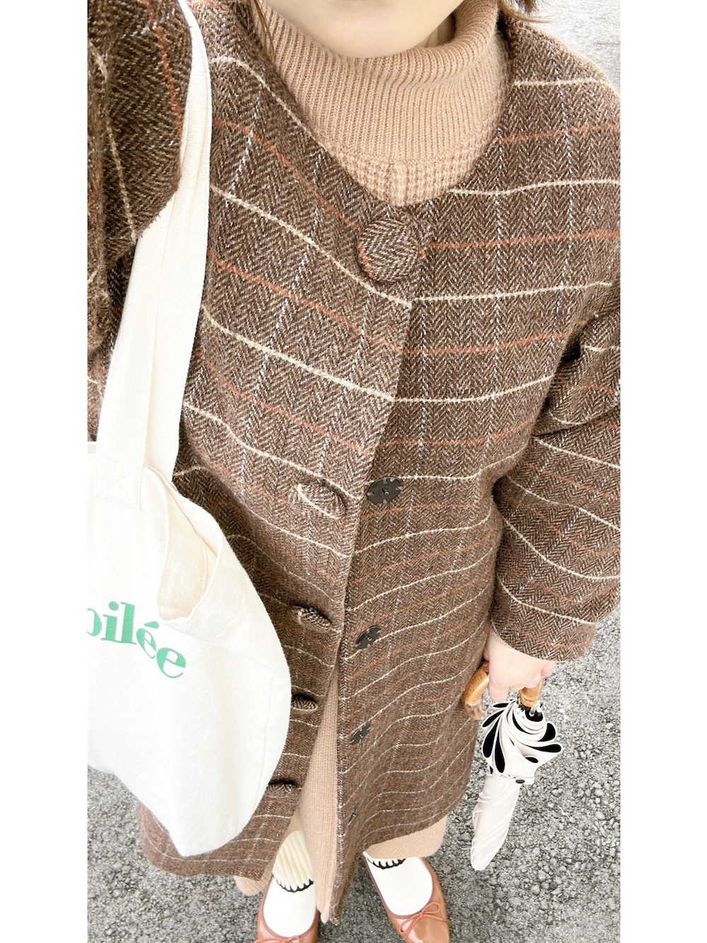 me.maのバレエシューズ「【21.0~26.5サイズ展開 / 新色追加】【 ふわカル 】 スクエアトゥ バレエシューズ」を使ったコーディネート