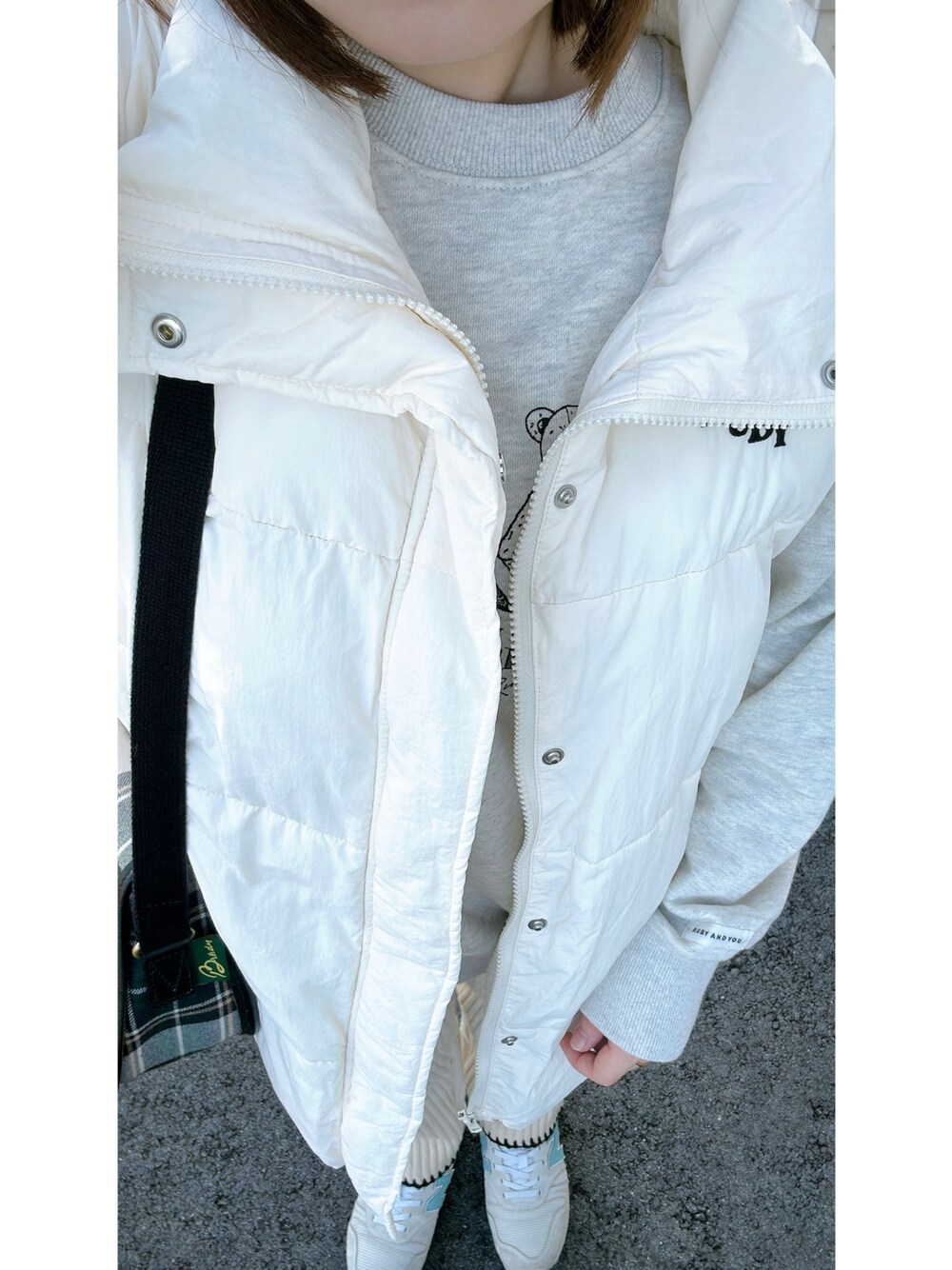 me.maのダウンジャケット/コート「2WAYダウンライクパフジャケット OFFWHITE」を使ったコーディネート