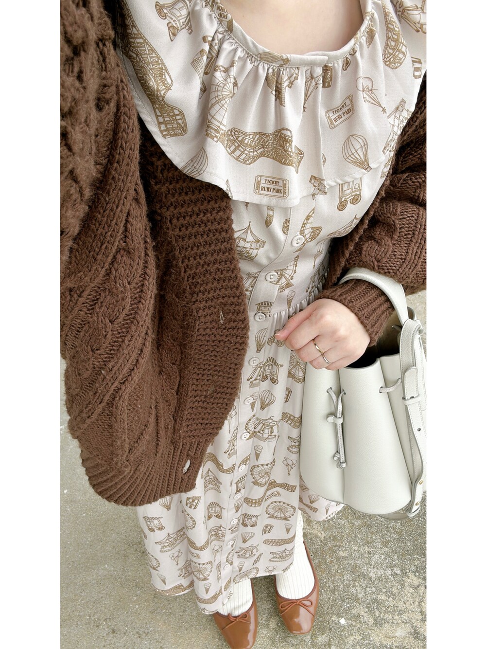 me.maのワンピース/ドレス「"RUBY PARK" ノーカラーワンピース BEIGE (remake)」を使ったコーディネート
