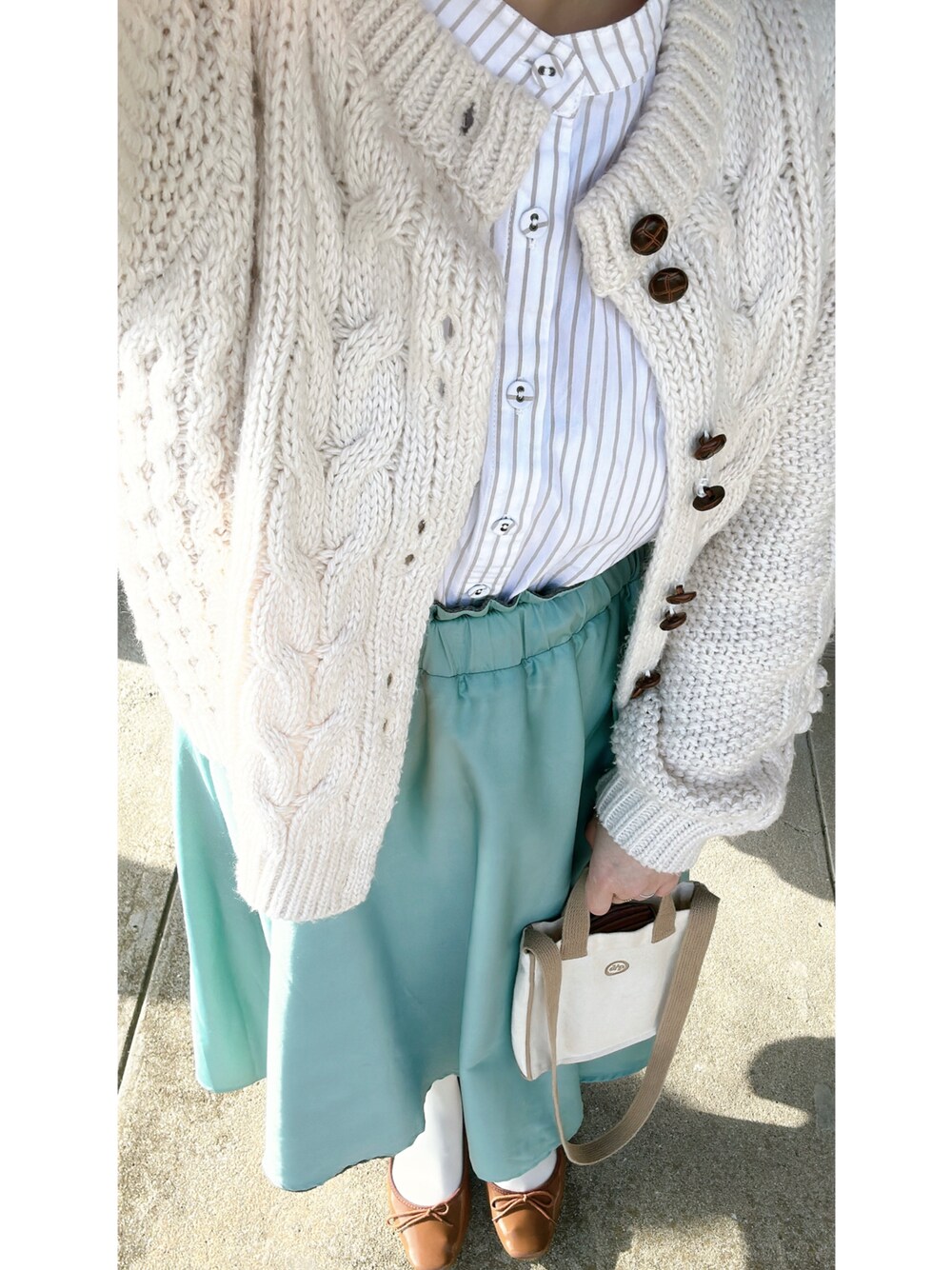 me.maのシャツ/ブラウス「2WAYスクエアカラーストライプブラウス BEIGE」を使ったコーディネート