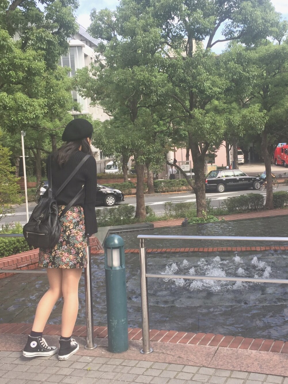 恵比寿ガーデンプレイスにお出かけ (朝10時に着いてあいてなくて噴水見てますの図) GUブラックコーデです☺︎