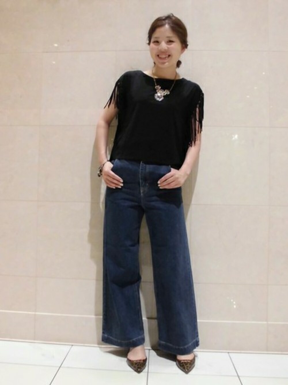 Salon de la Trinite'博多店スタッフのTシャツ/カットソー「袖フリンジ天竺プルオーバー」を使ったコーディネート
