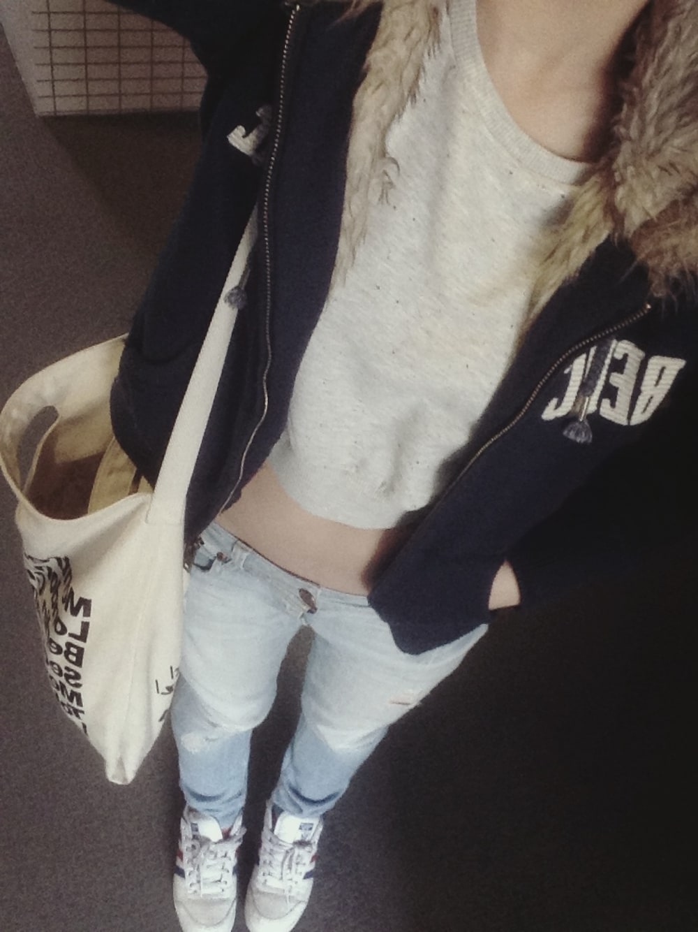 ◯Blouson… Abercromaie&Fitch ◯Tops… ZARA TRAFALUC ◯Denim… Forever21 ◯Sneaker… Adidas ◯Bag… American apparel あったかくなってきたので、 思い切ってショート丈。痩せます。