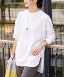 立体感のあるフードが顔まわり華やかに見せてくれるミドルコート。ボタンを開けてショールカラーのようにも着ていただけます。 丸みのあるシルエットが女性らしいミドルコートです。 中に着たロゴスウェットにはジョーゼットのカットソーをレイヤードして、ヴィンテージ風のレザースカートを合わせました。 スカートのフロントスリットが大人っぽく、足さばきも良くておすすめです。 36サイズ着用しています。