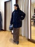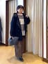 立体感のあるフードが顔まわり華やかに見せてくれるミドルコート。ボタンを開けてショールカラーのようにも着ていただけます。 丸みのあるシルエットが女性らしいミドルコートです。 中に着たロゴスウェットにはジョーゼットのカットソーをレイヤードして、ヴィンテージ風のレザースカートを合わせました。 スカートのフロントスリットが大人っぽく、足さばきも良くておすすめです。 36サイズ着用しています。