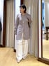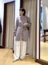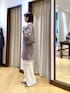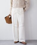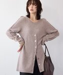 長めチュニック丈が新鮮なニット。前スリットに、種類の違う貝ボタンをつけたディテールがこだわりのポイントです。 少しだけウエストがシェイプされ、さりげないパワーショルダーでトレンド感もたっぷりのニットです! パンツは、ウエスト部分と膝部分にピンタックとレースを切り替えたディテールを入れたア・ニースのイージーパンツを合わせました。