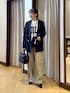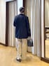 春にもおすすめのジャケットコーデ。 オンでもオフでも着回せる、優秀アイテムです!ゆとりもあるので薄手のスウェットは中に着ることができます。 中のコーディネートは、ワイドロゴスウェットに、ジョーゼットポケットブラウスのPMサイズを重ねています。 PMサイズのブラウスは着丈が5cm短くなり、低身長さんにもスッキリと着ていただきやすくなりました。 ワイドシルエットのボトムと合わせるのに、丈が短いおかげでウエストをインしなくてもバランスよく合わせていただけます。