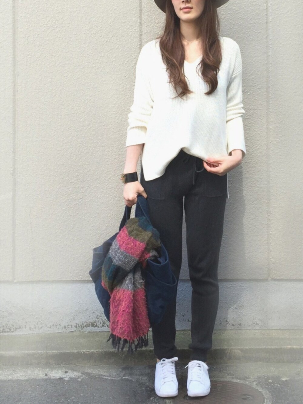 maruのニット/セーター「畦編みVネックプルオーバー」を使ったコーディネート