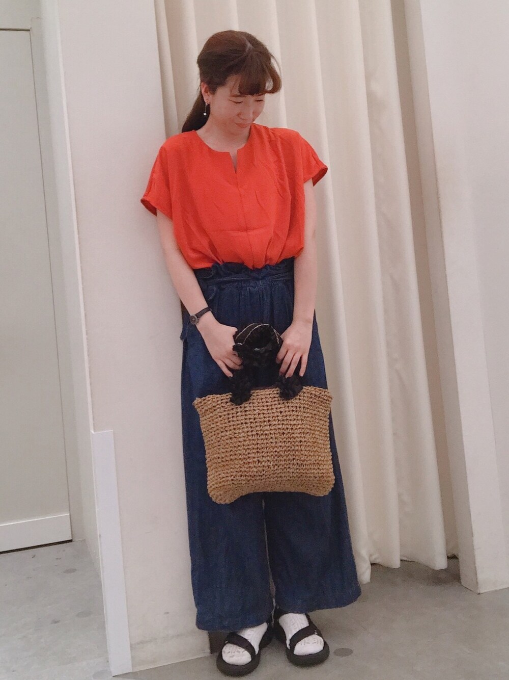ゆりまる*のデニムパンツ「COTTON USA デニムパンツ(ベルト付ワイド)」を使ったコーディネート