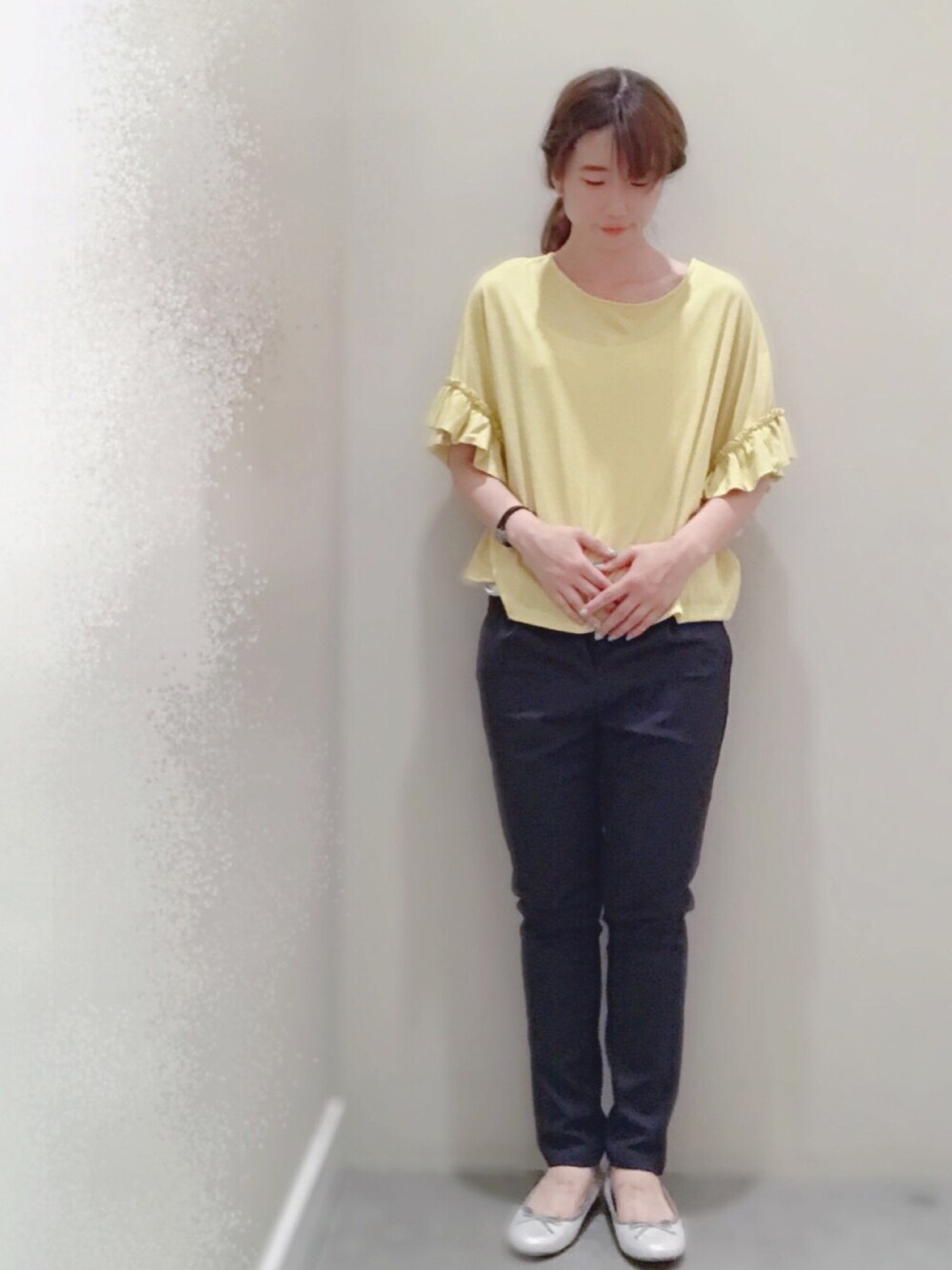 プチプラトップス❣️ 夏は黄色着たくなりますね🍋 パンツを合わせることで、スッキリとした印象に😌✨ ★誰でも合わせやすいコーデ📷❤️ ★パンプス大活躍