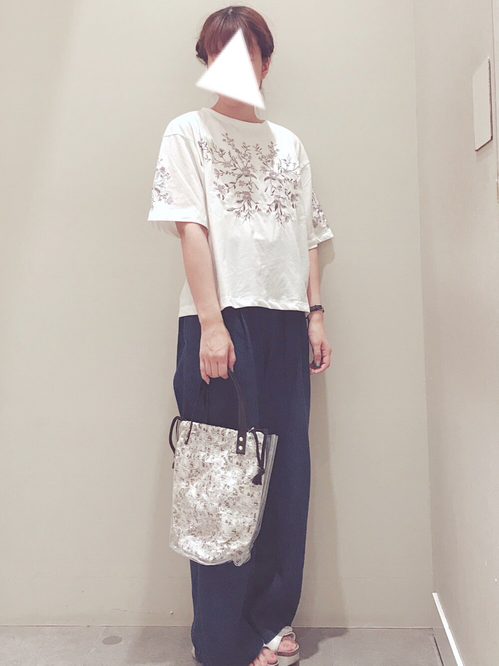 刺繍のトップスが可愛い😍❤️ Tシャツ×デニム×クリアバック大活躍です★
