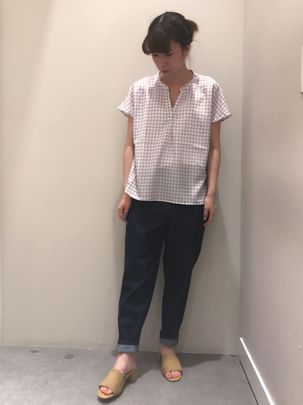 ゆりまる*のシャツ/ブラウス「・スタンドカラーギンガムブラウス ●」を使ったコーディネート