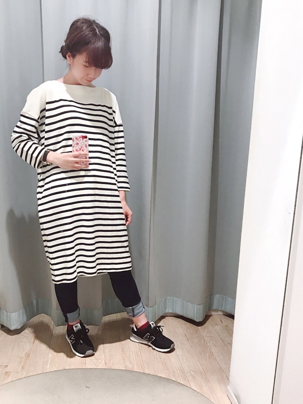 ★いつもイイネ、saveありがとうございます😊✨ 今回は"定番ボーダーコーデ" 1枚でも着れるこのワンピース万能です❤️🙆♀️ スニーカー+スキニーでカジュアルに着こなせます🌿