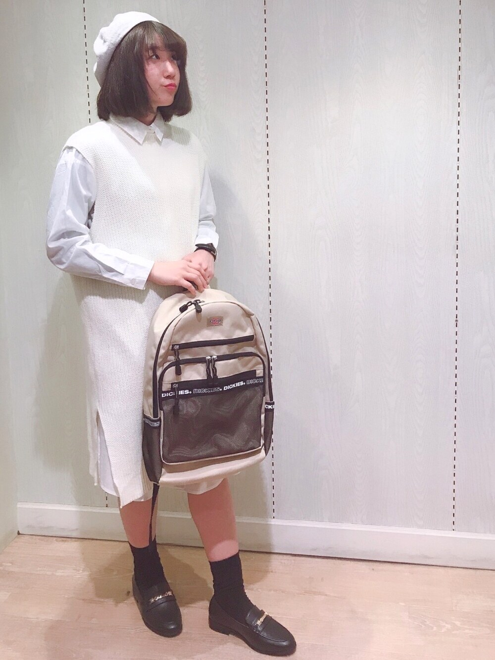 ゆりまる*のワンピース「SET2点 ロングニットベスト+シャツワンピース ●*」を使ったコーディネート