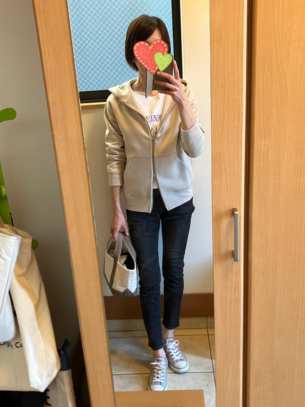 おはようございます☺︎ いつも、見てくださりありがとうございます♪ 先日の、パーカー着回しコーデです☆ シフト性の仕事をしているのですが、今日は間違えて30分早く来すぎちゃいました😳