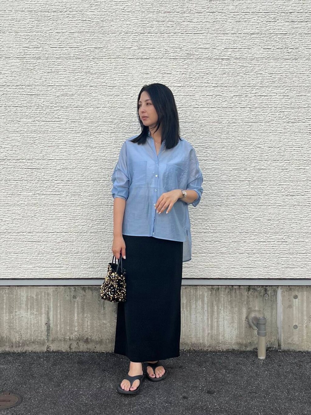 はやし(warehouse 土岐プレミアムアウトレット)のショルダーバッグ「チェーン付きスパンコールバッグ」を使ったコーディネート