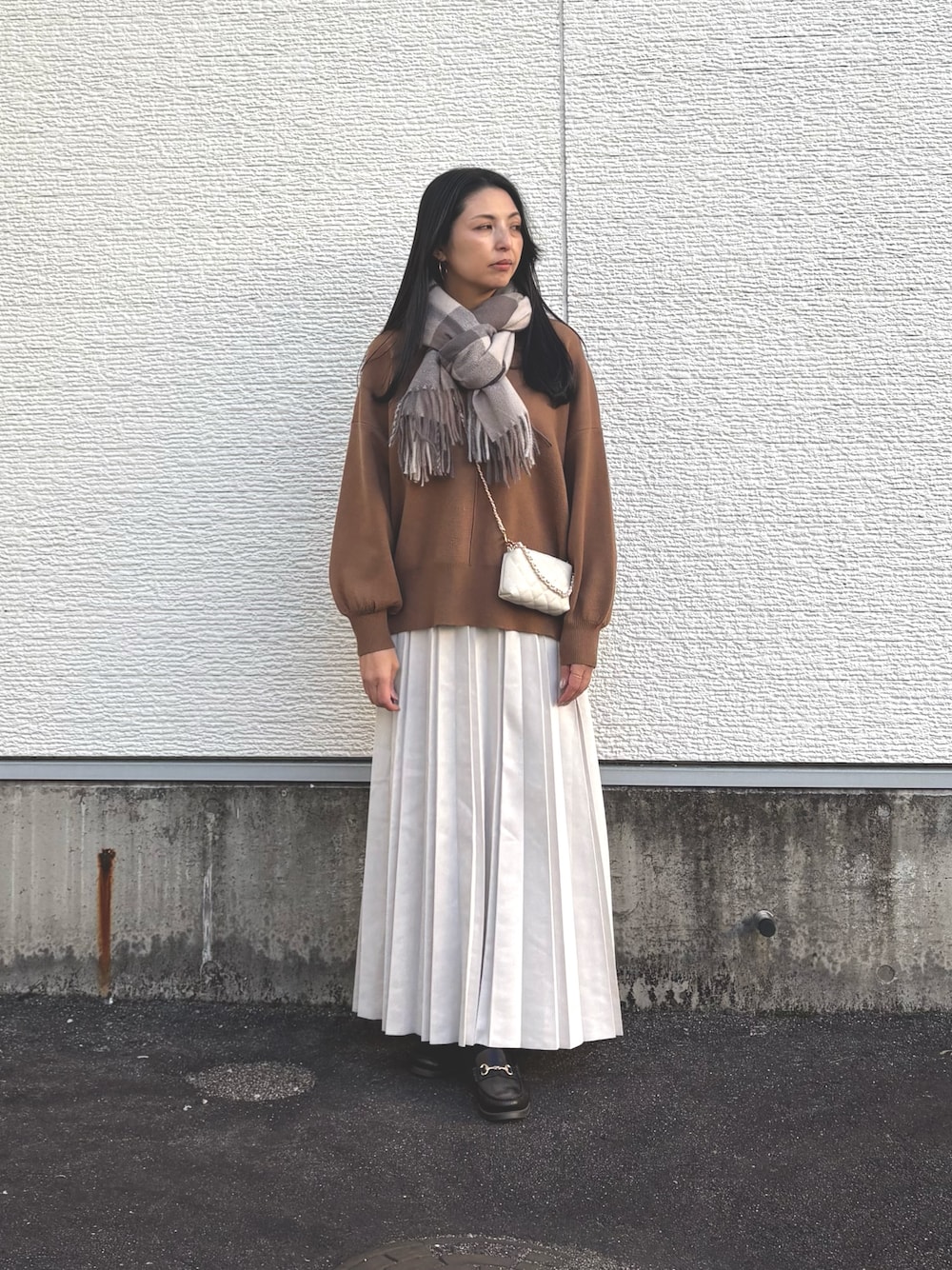 はやし(warehouse 土岐プレミアムアウトレット)のマフラー「チェックストール」を使ったコーディネート