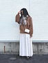 ニットは厚みがありつつ柔らかいので 着心地がいいです。 程よいゆったり感が◎ スカートはフェイクスエードの生地感が 高見えします。 広がりすぎないところがおすすめポイントです。 ウエスト総ゴムで楽な履き心地です。