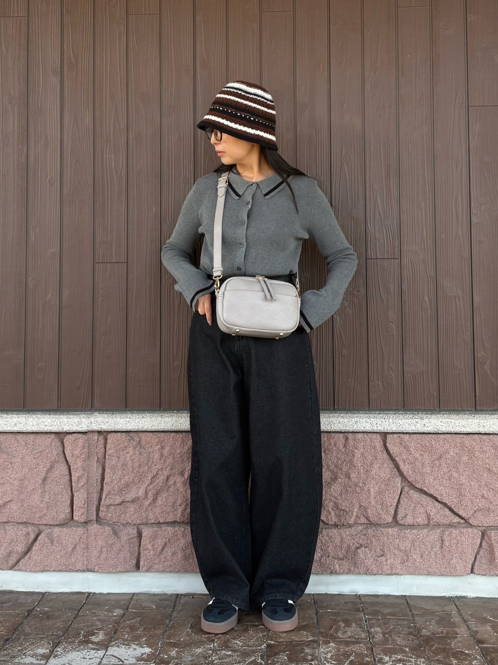 はやし(warehouse 土岐プレミアムアウトレット)のニット/セーター「配色ポロニット」を使ったコーディネート