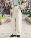 羽織るだけでコーデが引き締まる大人のフェイクレザーブルゾン。軽やかで合わせやすく、季節の変わり目に頼れる一着。 パンツは、穿くだけで旬バランスが完成するバレルレッグ。体型をさりげなくカバーしつつ、すっきり見えも叶う主役パンツです。 中に着ているロンTは、さりげないロゴでこなれ感をプラス。きれいめにも馴染む大人仕様で、一枚でも重ねても頼れる万能アイテムです!