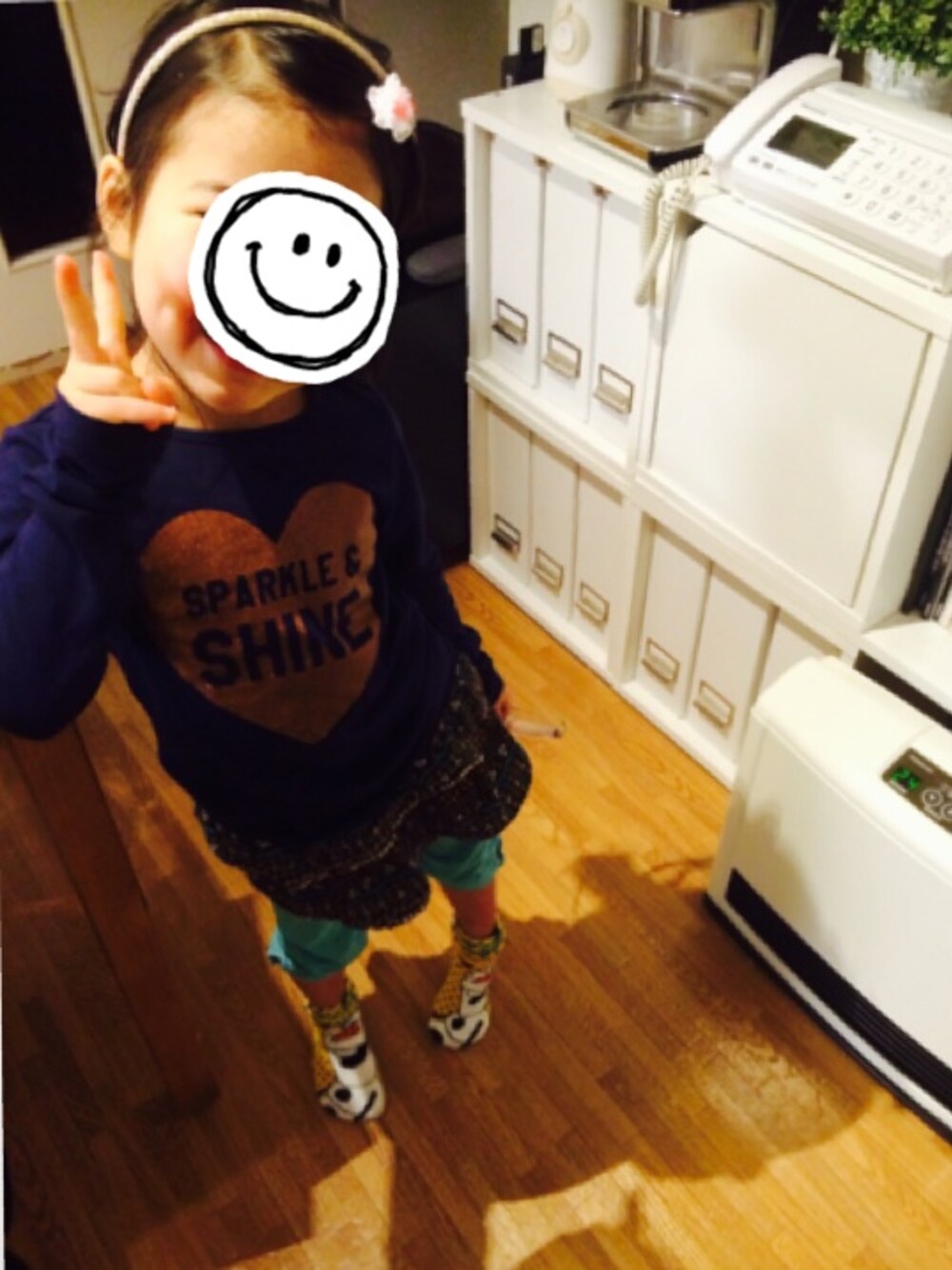 毎朝自分でコーデ、ヘアメイクする五歳のお姉ちゃんです。 今日はブルー主体のH&Mコーデみたい(OvO) ポイントはオラフの靴下だって
