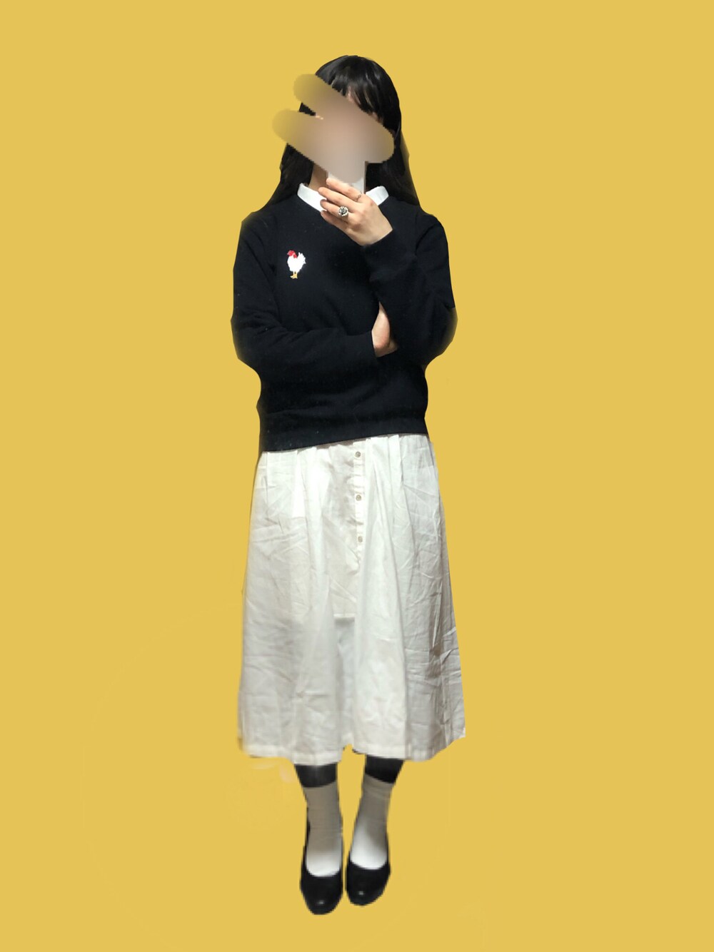 シャツワンピとスウェットのコーデ。 このシャツワンピは襟の大きさや開き具合がちょうどよくてとても好きです。 ネイビーとホワイトの組み合わせは知的な雰囲気がでますね。