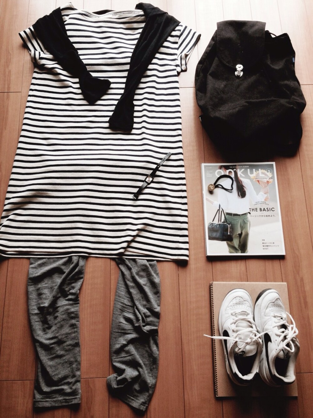 ワンピース オーシバル 黒Tシャツ UNIQLO レギンス 無印良品 靴 NIKE リュック BAGG 時計 CASIO ゴム イルビゾンテ ナイキのスニーカーを 久しぶりに引っ張りだしてきました。