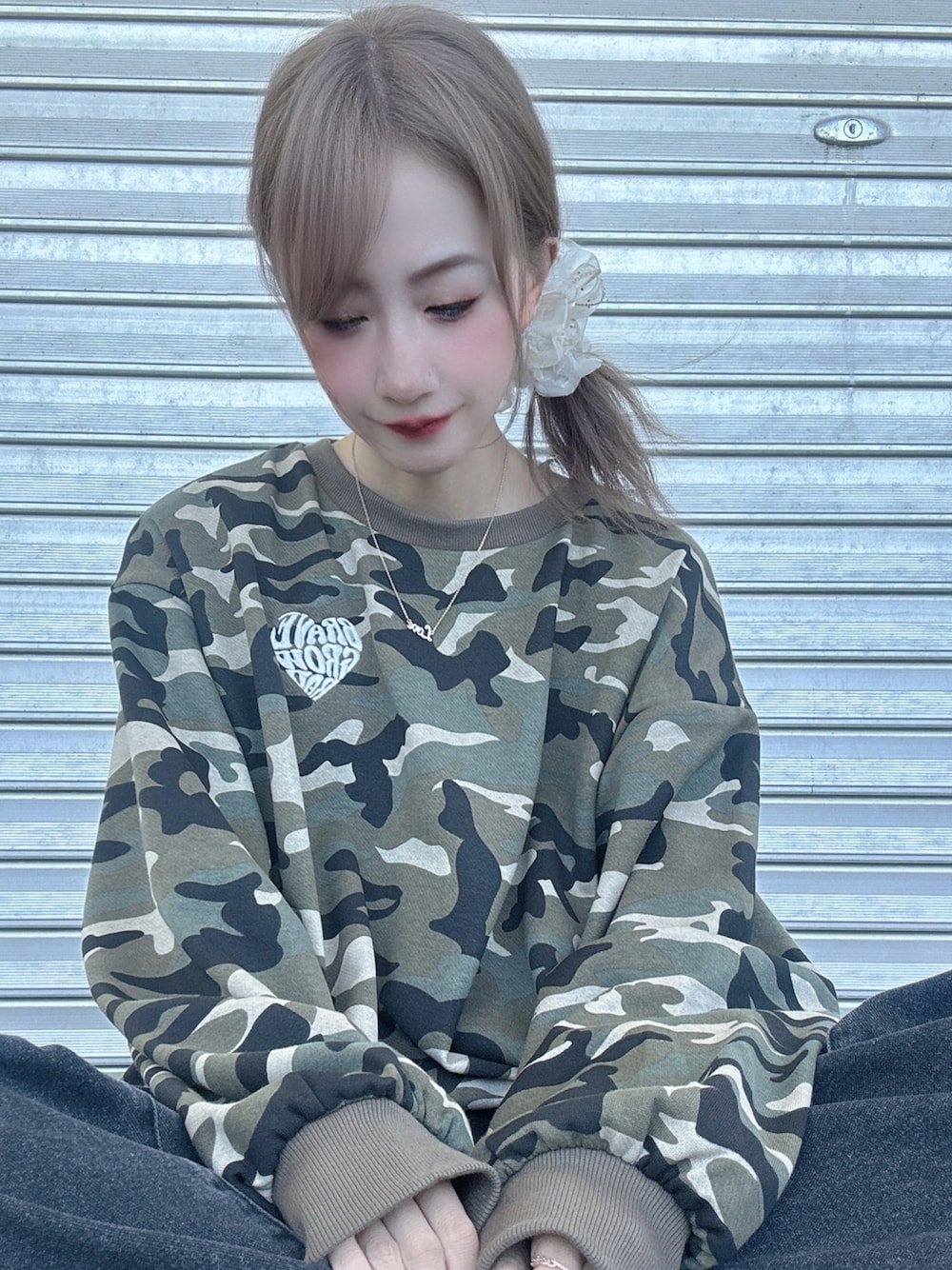 迷彩の可愛いスウェット 背中にハートのロゴが韓国っぽくて 贅沢な刺繍もGOOD!!