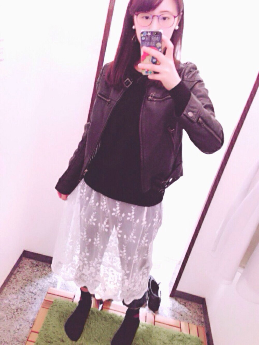 今日はモノクロコーデ! かなり前に買ったライダースと、ユニクロのファインメリノニット、 濃いめのデニムパンツに、レースのスカートを重ねてみました! 今日はSupreme.La.Laの展示会を見てきました💕 レースのトップスに、かわいいフリルのアウター、キレイめガウチョパンツの3つもオーダーしてしまいました😆💗💗 早く着たいなぁ✨