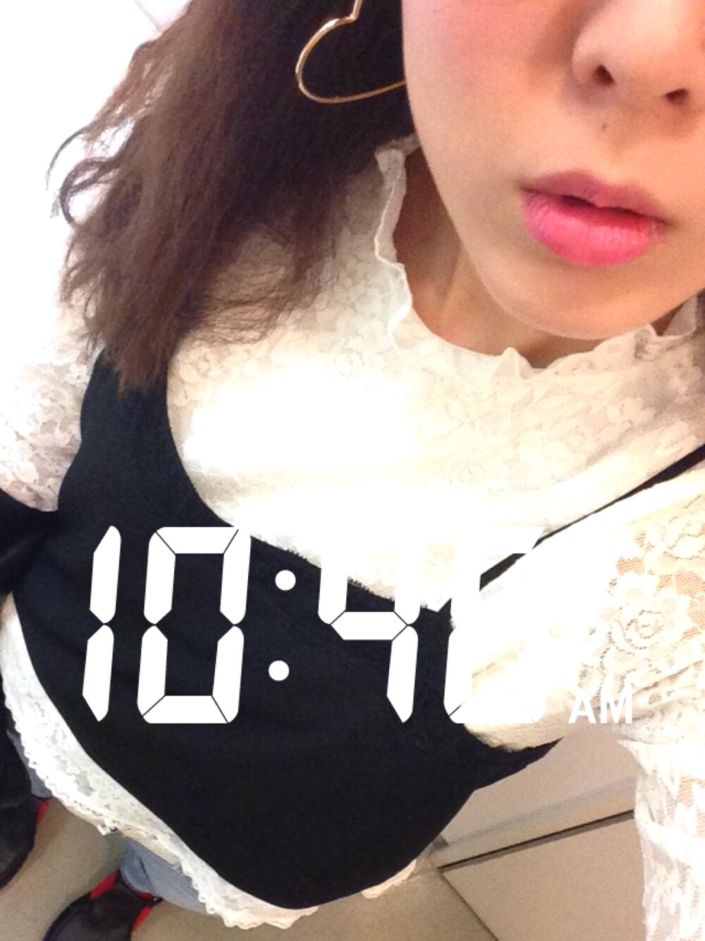 今日はあったかいからやっとララのレーストップス着られた😍💕💕 革ジャンと合わせるのいい〜🎶