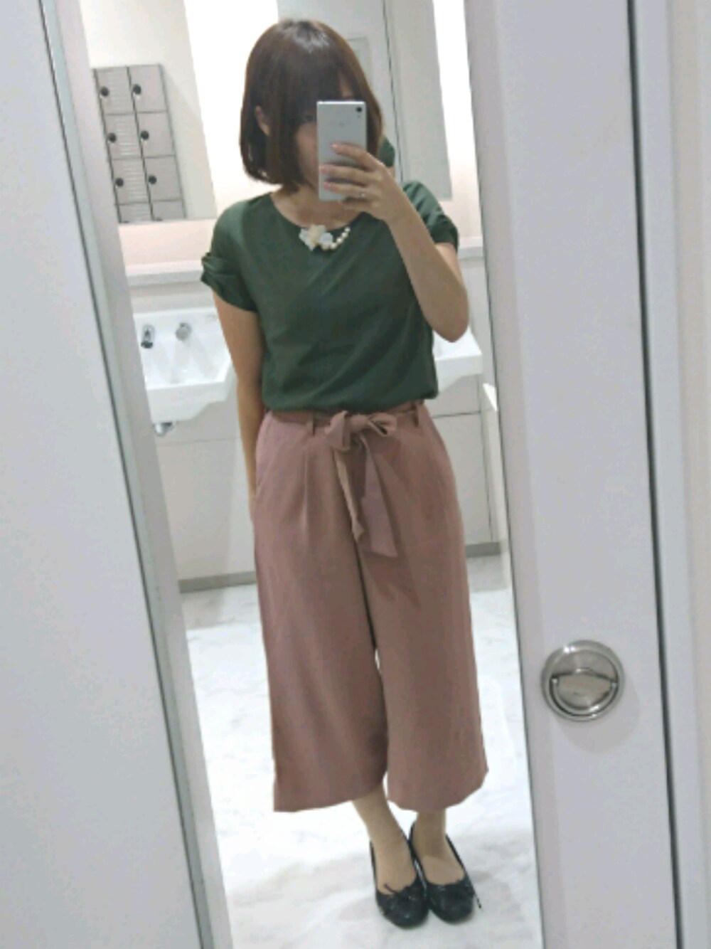 今日はパンツスタイル(^ワ^=) ちょっと涼しくなってきたかな? カーキ×ピンクに挑戦☆ 今はネックレス欲しくなってきました。。 可愛くてコーデ映えするの 探してみよう(*´ω`)ノシ