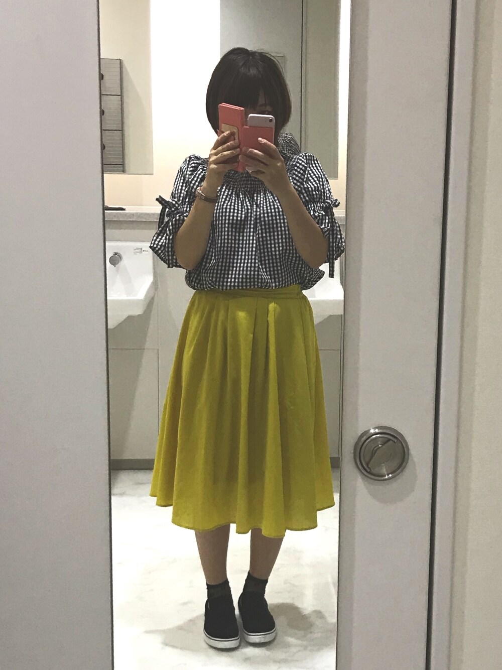 スリッポン初✨ パンツは似合わないから履かないとなると、長めスカートにカジュアルな感じの服が合うのかな??