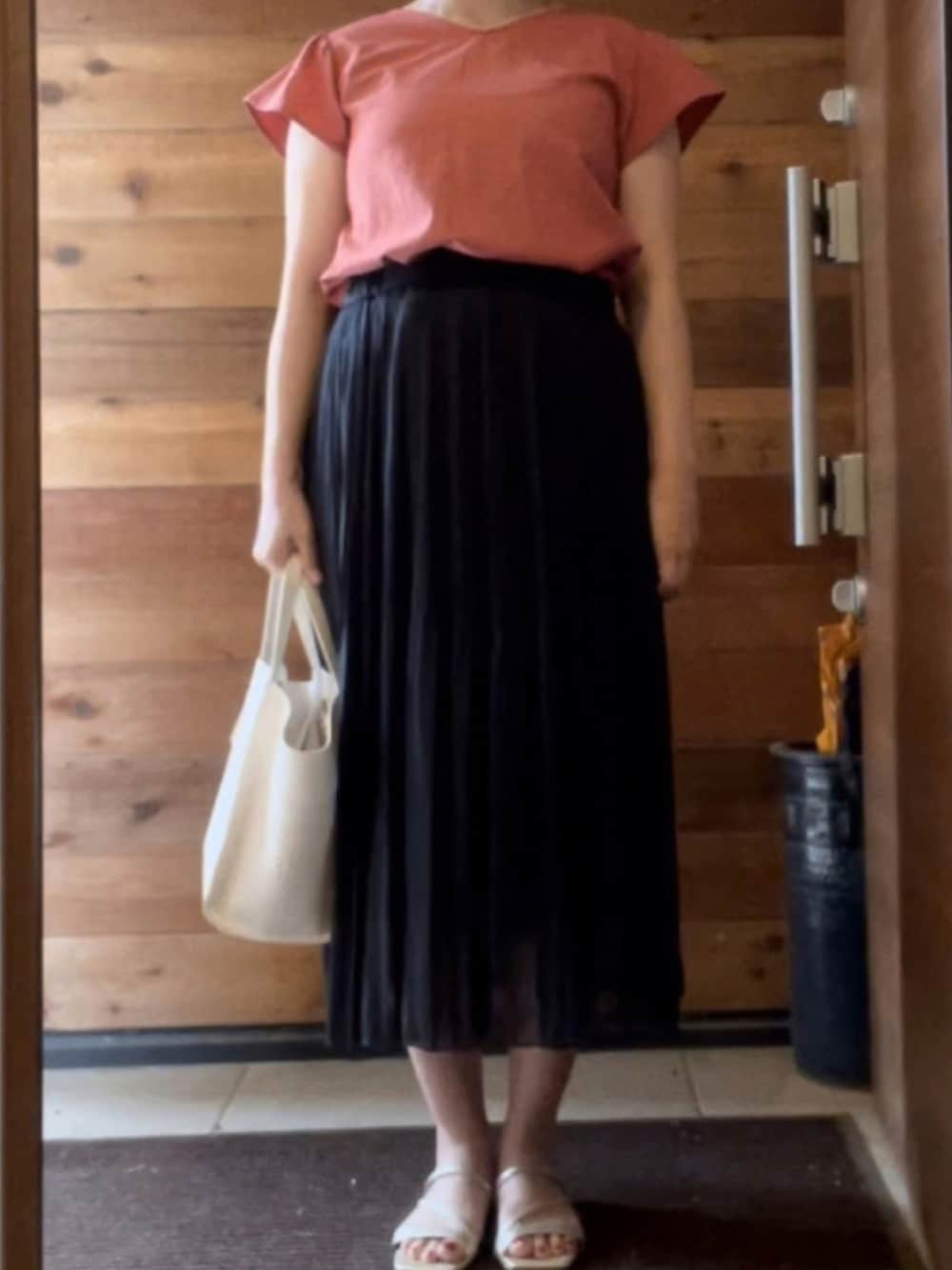 濃い色だけど素材で初夏コーデ。
