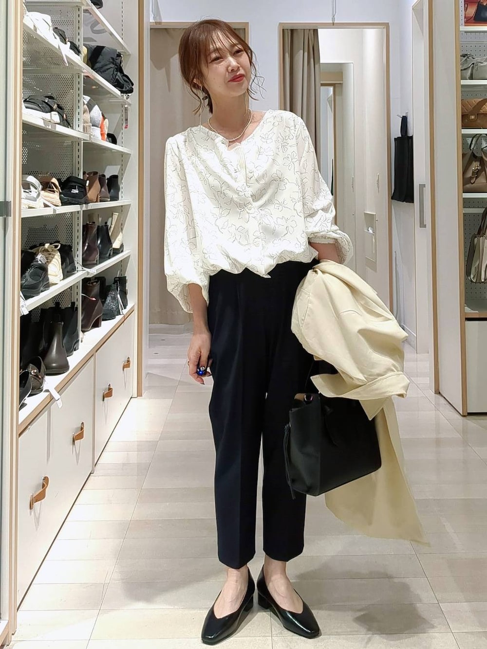 ▼使用アイテムは下からチェック出来ます▼ Instagramも毎日投稿中!質問・相談何でもどうぞ♡ ブラウスにテーパードパンツを合わせてキレイめコーデにしました(^^) 小花柄のブラウスはコーデのポイントになって可愛いです!裾のリボンで絞ってインしてる風にも出来ます! トレンチコートはとっても軽くて柔らかくて着やすいです! ブラウスを着回したコーデは♡ 【着用サイズ】 トレンチコート→Mサイズ いつも通りで◎ とっても軽くて柔らかい生地感で羽織りやすいです! 膝が隠れる長さでパンツにもスカートにも合わせやすいです! ベーシックなデザインなので流行り廃りなく使えます! ブラウス→Mサイズ いつも通りで◎ ゆったり着られますが、サラッとした落ち感のある素材なので着膨れせずに、スッキリ綺麗に見せてくれます◎ 裾にコードが付いているので絞るとインしてる風コーデも楽しめます! テーパードパンツ→Sサイズ やや大きめの作りです! XSサイズも履けますがふくらはぎが気になるので、Sサイズを選びました! ウエストはゴムでとても楽な履き心地なのに綺麗なシルエットが出ます! タックのお陰で腰や太ももにゆとりがあり体型カバー出来て◎ 足首が少し見える丈感でスッキリ見えます! センターラインのお陰で脚長効果あり! シューズ→Mサイズ LサイズだとカパカパするのでMサイズを選びました! クッションが効いていて歩きやすいです!