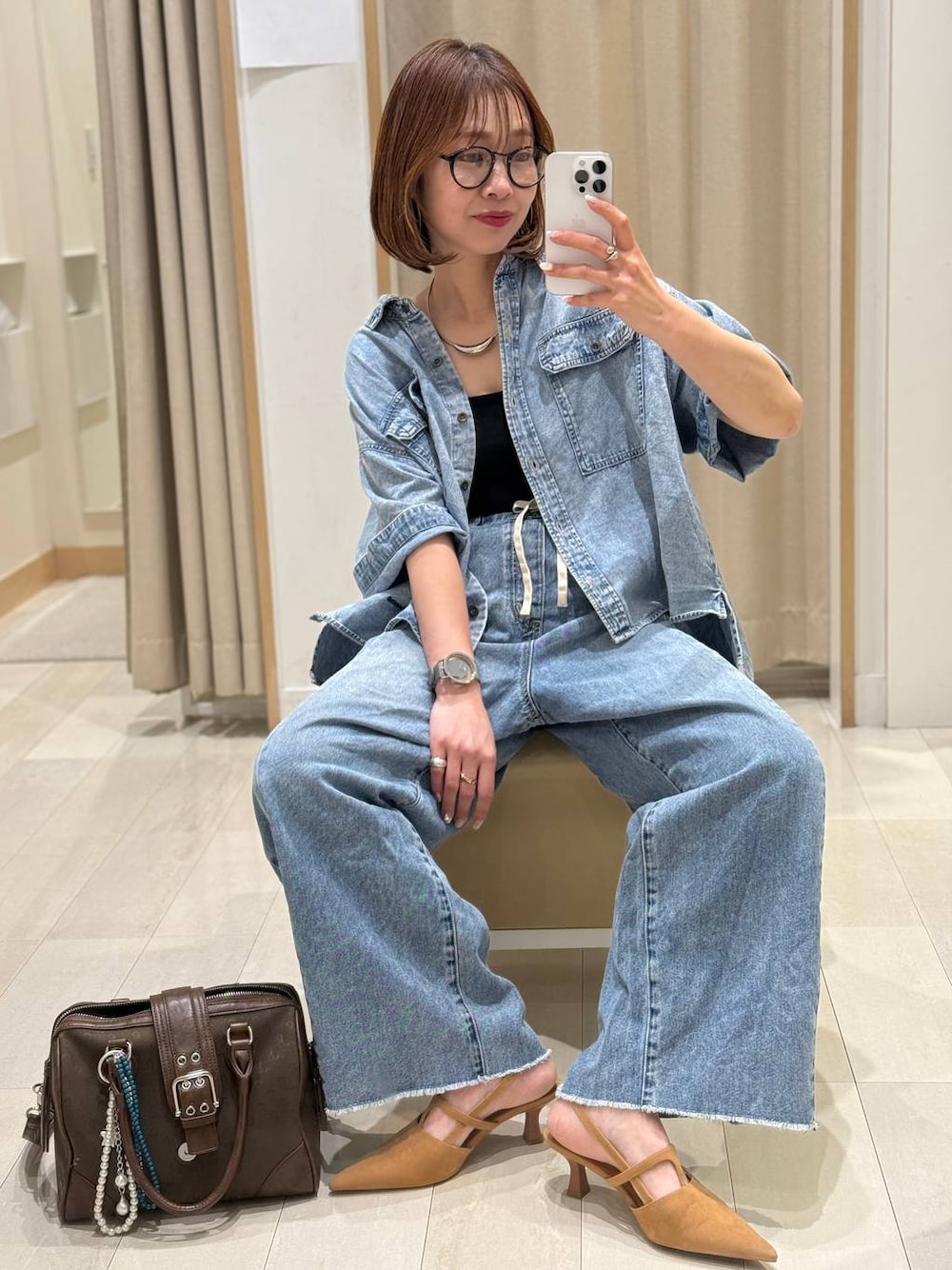 ▼使用アイテムは下からチェック出来ます▼ Instagramも毎日投稿中!質問・相談何でもどうぞ♡ デニムシャツにイージーデニムを合わせてカジュアルコーデにしました(^^) デニムシャツのライトブルーとイージーデニムのブルーだと、色味がほぼ同じでセットアップ感しっかりでます!私がシャツを薄い方にしたのはこれも理由♡ デザイン性があるからセットで着ても作業着感なし! 【着用サイズ】 シャツ→Lサイズ Mサイズでもゆったりですが、オーバーサイズで着たかったのでLサイズを選びました! 前は短めでスッキリ、後ろはお尻がしっかり隠れる長さで使いやすさ抜群! 色落ちがオシャレ見え! カップ付きキャミ→Mサイズ いつも通りで◎ カップがしっかりしているのに付けているのをわすれるくらい締め付けがないです! 背中にゴムが入っていないので段差も出来ないです! デニム→Mサイズ Sサイズも履けますが長めの丈でゆるめのシルエットで履きたかったのでMサイズを選びました! 柔らかさはありますが、しっかりデニムの風合いもあり、イージーなデザインでも安っぽさがないです! フロントのデザインも脚長効果あり!
