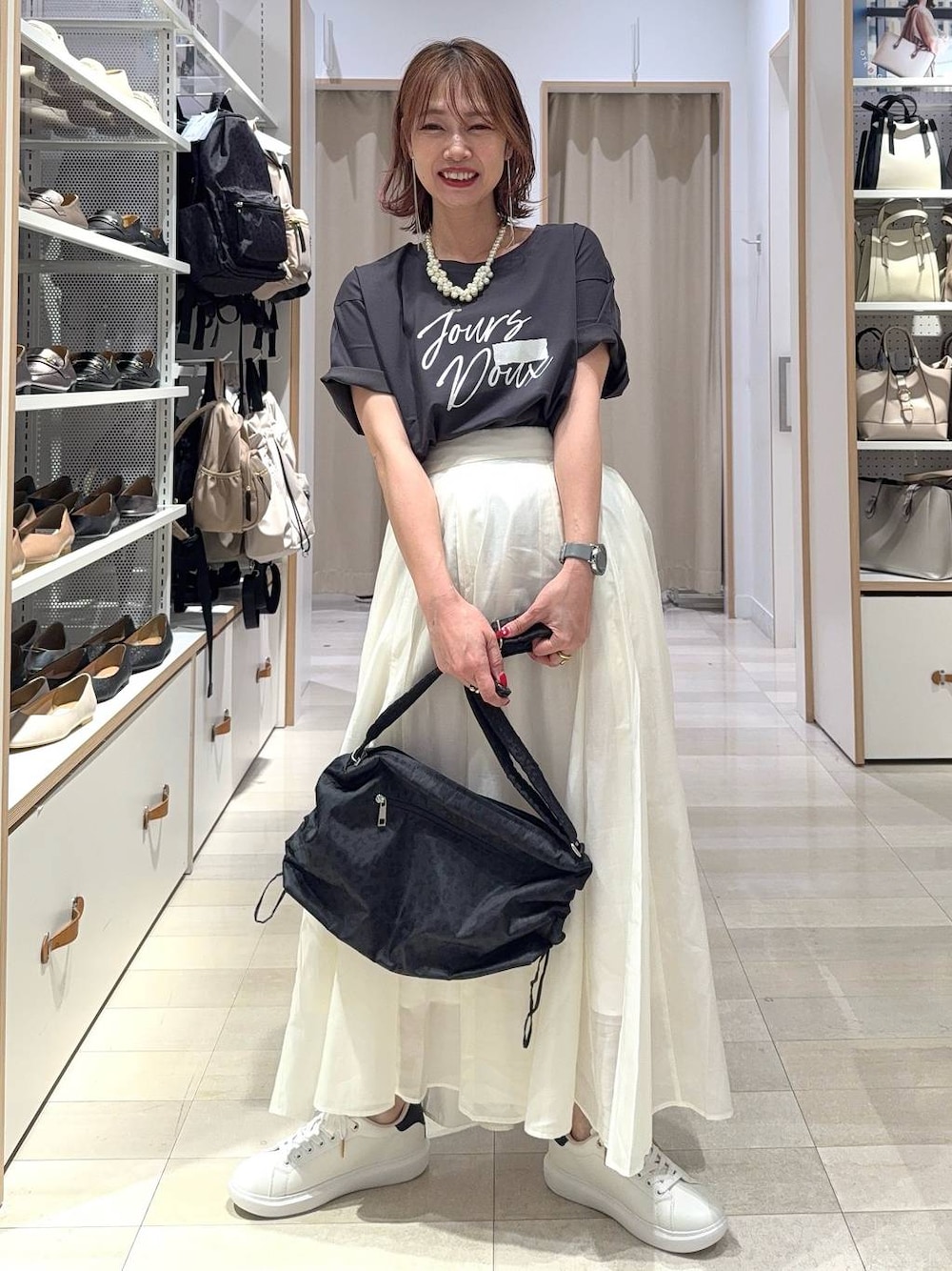 ▼使用アイテムは下からチェック出来ます▼ Instagramも毎日投稿中!質問・相談何でもどうぞ♡ ロゴTにフレアスカートを合わせて甘めカジュアルコーデにしました(^^) チャコールTシャツなら女性らしいフレアスカートも大人っぽくまとまります!スニーカーでも可愛さのあるコーデに! 【着用サイズ】 Tシャツ→Mサイズ いつも通りで◎ ゆったりしています! ツルッとした素材で肌触りが良いです! スカート→レギュラーサイズ ウエストはゴムなので楽に履けます! たっぷりの生地感でボリュームがあって可愛いです! 軽やかな素材なので膨張して見えにくいです! スニーカー→Lサイズ 靴下も履くことを考えると23.5〜24.0の私はLサイズがジャストでした! 軽くては着心地もいいです!