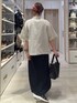 ▼使用アイテムは下からチェック出来ます▼ Instagramも毎日投稿中!質問・相談何でもどうぞ♡ 半袖ジャケットにボーダーTとIラインスカートを合わせて大人カジュアルコーデにしました(^^) ジャケットは袖口が折り返しデザインでスッキリ見えます! インナーTシャツはふわっとしたドルマンデザインで体型カバーにも◎ 【着用サイズ】 ジャケット→Mサイズ ゆったりしています! 長過ぎずスッキリ見えます! 袖口が折り返しになったデザインがオシャレです! シャツのように薄手で羽織りやすいです! Tシャツ→Mサイズ いつも通りで◎ ゆったりしています! 肩幅も広めの作りで短いお袖でも華奢見えします! ふわっとタックのよったデザインなので一枚で可愛く、体型カバーも出来ます◎ サラッと薄手で涼しいです! スカート→レギュラーサイズ ウエストはゴムで楽ちんです! ピタッとしないのでお尻のラインも響きにくいです! 細いプリーツなのでよく伸びて動きやすいです! シューズ→Mサイズ 大きめなのでMサイズで問題なく履くことができます! 厚底ですがとっても軽くて履きやすいです!