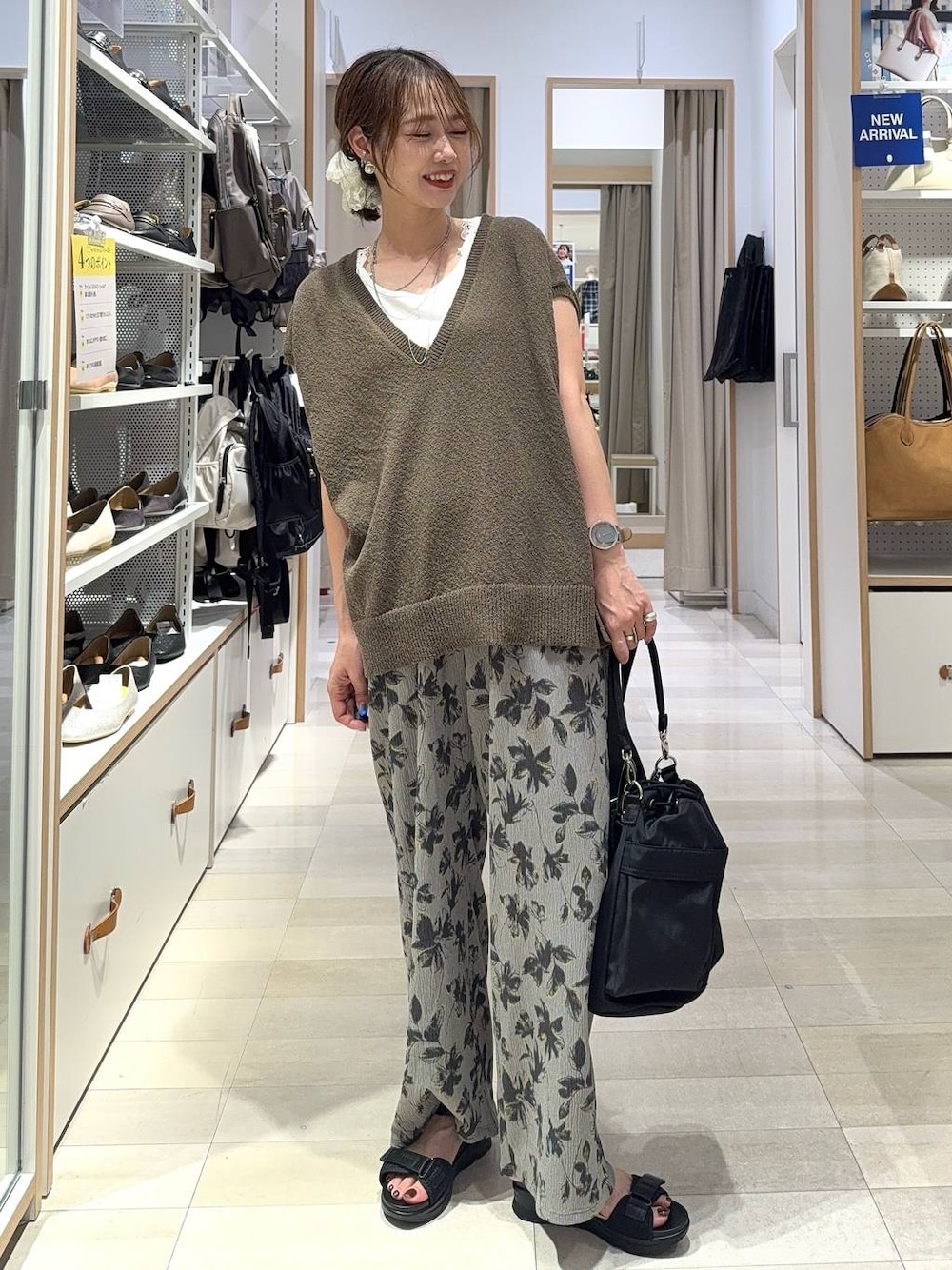 ▼使用アイテムは下からチェック出来ます▼ Instagramも毎日投稿中!質問・相談何でもどうぞ♡ ベストに柄パンツを合わせてカジュアルコーデにしました(^^) ベストはさらさらの薄手のサマーニット素材なので夏にも着やすいです!セットのタンクトップはカップ付きなので一枚でOK! 柄パンツはコーデのポイントになってオシャレ見え!ブラウン系でまとめると今年っぽいです! 【着用サイズ】 ベストセット→Mサイズ いつも通りで◎ サラッと薄手のサマーニット素材で涼しいです! 肩がしっかり隠れるデザインで体型カバーできます! インナーはカップ付きタンクトップなので楽ちんコーデに! タンクトップ→Mサイズ いつも通りで◎ 前後2WAYで使えます! パンツ→Mサイズ いつも通りで◎ 程よいゆとりで脚のラインは拾わないけれど、ストンとしたシルエットで細見えします! 皺にもならず扱いやすいです! シューズ→Mサイズ 大きめなのでMサイズで問題なく履くことができます! 軽くて歩きやすいです!