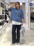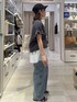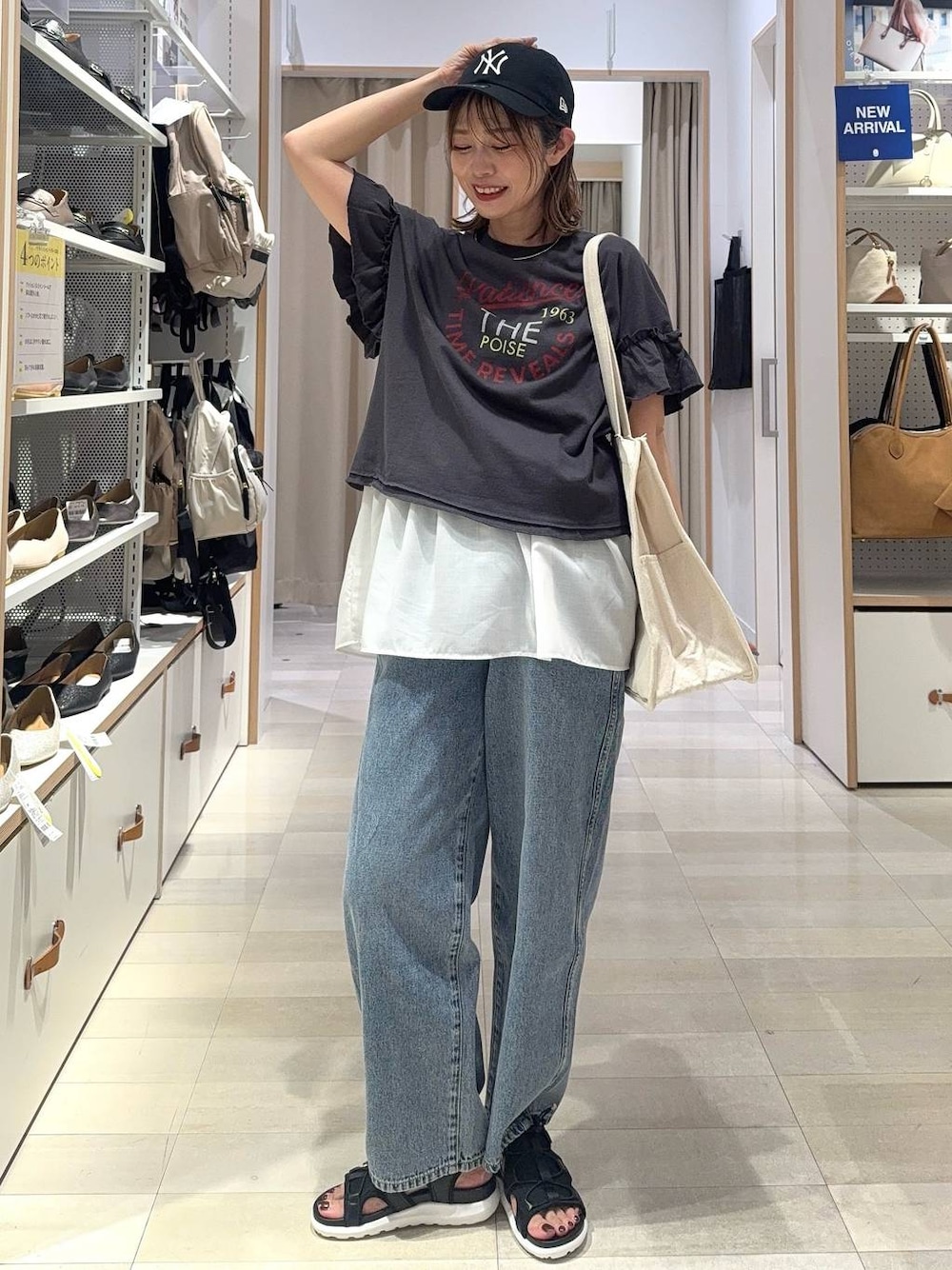 ▼使用アイテムは下からチェック出来ます▼ Instagramも毎日投稿中!質問・相談何でもどうぞ♡ フリルロゴTにバギーデニムを合わせてカジュアルコーデにしました(^^) Tシャツは袖フリルですがリメイク風の加工で甘くならないです!スッキリ見えるけどウエストが隠れる絶妙な短め丈!ペプラムインナーをレイヤードしてポイントに! インナーはデザイン違いのレースタイプもオススメ! 【着用サイズ】 Tシャツ→Mサイズ ゆったり大きめです! 短め丈でインせずそのまま着やすいです! クタッとした古着っぽい素材感です! インナー→Lサイズ しっかり出したかったのでLサイズを選びました! デニム→Sサイズ いつも通りで◎ ウエスト後ろ側がゴムなので楽に履けます! 股上深めでウエストインすると脚長効果抜群◎ ノータックなので腰回りがスッキリ見えます! 足のラインを拾わない太めのストレートデザインで体型カバーにも◎ シューズ→Mサイズ 大きめなのでMサイズで問題なく履くことができます! 厚底ですがとっても軽くて履きやすいです!
