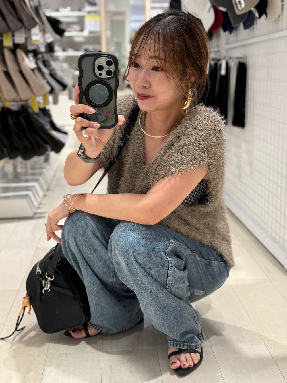 ▼使用アイテムは下からチェック出来ます▼ Instagramも毎日投稿中!質問・相談何でもどうぞ♡ 出勤コーデ♡ フェザーベストにバギーデニムを合わせてカジュアルコーデにしました(^^) ベストのふさふさ感がたまらなく可愛いです!肩の落ちるデザインだから一枚出来ても二の腕が隠れます!シンプルデニムコーデもオシャレ見え! 【着用サイズ】 ベストセット→ショート ベストはゆったりしていて肩下まで落ちるデザインです! ショートはウエストが隠れるくらいでスッキリ見えます! レイヤードコーデもしやすいです! サラッとしたモケモケだからチクチクしないです! デニム→Mサイズ いつもはSサイズを着用していますが、太めに履きたかったのでMサイズを選びました! 着丈も長くなり厚底と合わせると脚長効果有り! ウエスト後ろ側がゴムなので楽に履けます! 股上深めでウエストインすると脚長効果抜群◎ ノータックなので腰回りがスッキリ見えます! 足のラインを拾わない太めのストレートデザインで体型カバーにも◎ シューズ→Mサイズ やや大きめです! スポッと片手で履けます!