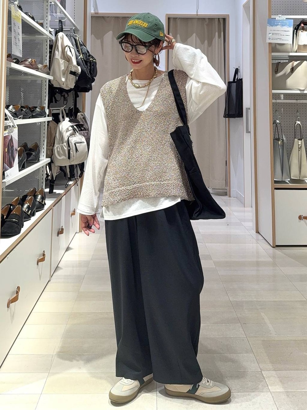 ▼使用アイテムは下からチェック出来ます▼ Instagramも毎日投稿中!質問・相談何でもどうぞ♡ キラキラベストにコクーンパンツを合わせてカジュアルコーデにしました(^^) ベストはふさふさ素材とは違い表面感はあるけど夏にも着やすいです!キラキラ感も可愛いです! 流行りのコクーンパンツを合わせてゆったりを楽しむコーデに! 【着用サイズ】 ベストセット→Mサイズ いつも通りで◎ ベストは程よいゆとりで落ち感があるので着膨れしにくいです! ラメ入りですがチクチク感は気になりません! Tシャツ→Mサイズ かなりゆったり大きめです! お尻も隠れる長めの着丈でレイヤードにも◎ サイドのスリットも長めでオシャレ見えします! クタッとした素材で体型を拾いません! パンツ→Мサイズ かなりゆったり太めのシルエットで脚のラインは全く出ません! ウエストはゴムで楽ちんです! 厚手過ぎず薄手過ぎず、長い期間使えそうです! スニーカー→Lサイズ 靴下も履くことを考えると23.5〜24.0の私はLサイズがジャストでした! とても軽くて歩きやすいです!