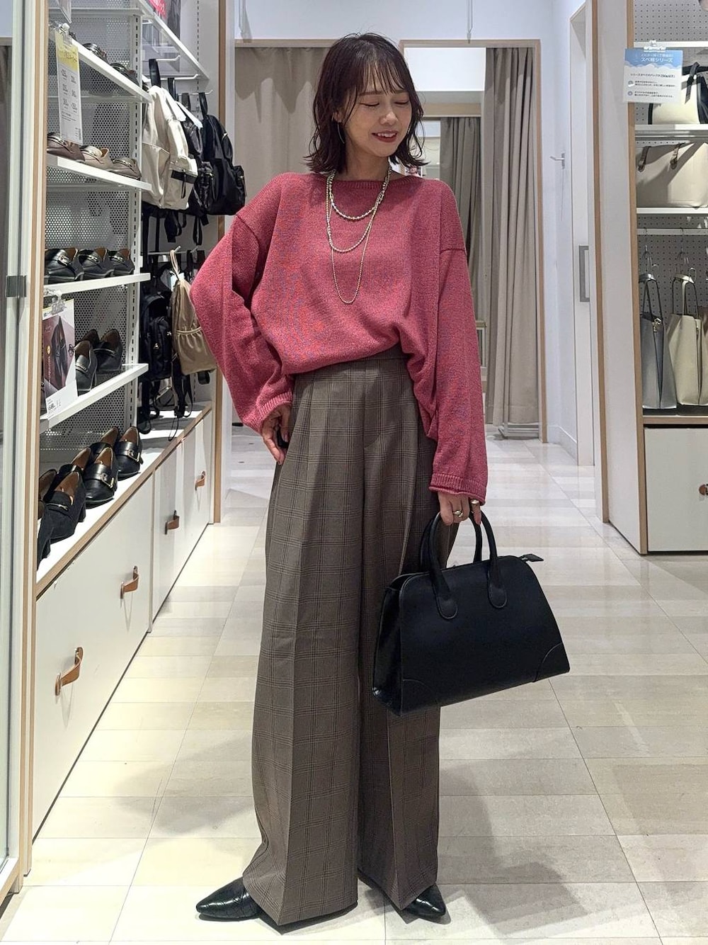 ▼使用アイテムは下からチェック出来ます▼ Instagramも毎日投稿中!質問・相談何でもどうぞ♡ ゆったりトップスにチェックのワイドパンツを合わせてキレイめコーデにしました(^^) トップスは落ち着いたローズのカラーが秋らしいです!ストンとしたシルエットで着膨れすることなく着られます! パンツは楽ちんな履き心地ですがキチンと感もしっかり! 【着用サイズ】 トップス→Mサイズ ゆったりしています! ストンとしたシルエットで着膨れしません! ほんのり透け感のある素材で重たくならないです! インナー次第で長く着られます! パンツ→Mサイズ しっかりゆとりと長さが欲しかったのでMサイズを選びました! フロントファスナーなしで、ウエストはゴムと紐で調整可能です! サラッとした厚手過ぎない生地感で長い期間使えそうです! 洗濯後もセンタープレスがしっかりあります! シューズ→Mサイズ LサイズだとカパカパするのでMサイズを選びました! 厚底ですが軽くて歩きやすいです!