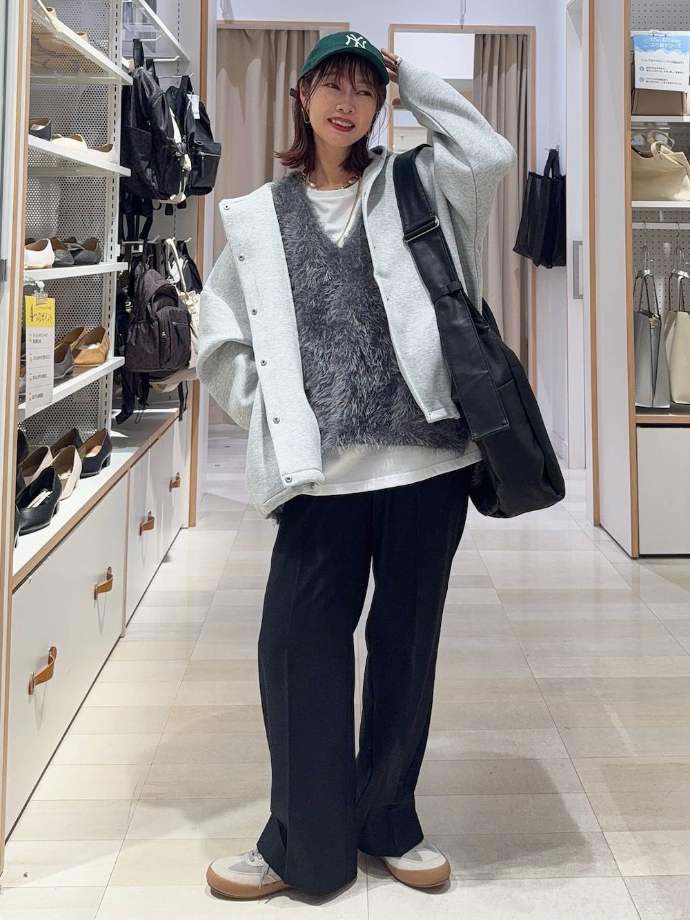 ▼使用アイテムは下からチェック出来ます▼ Instagramも毎日投稿中!質問・相談何でもどうぞ♡ フードブルゾンにシャギーベストとワイドパンツを合わせてカジュアルコーデにしました(^^) ブルゾンはふわっとしたシルエットが可愛いです♡ このベストは肩が落ちないデザインなのでモケモケだけどスッキリ見えます!ふわふわ感もしっかりで、とても柔らかくてずっと触っていたい手触りです! パンツはオンオフどちらにも使えます! 【着用サイズ】 ブルゾン→Mサイズ かなりゆったりしています! 裾を絞るとフワッと可愛いシルエットです! ツルッとしたハリのある素材でややしっかりめ! トップス使いではなくアウターとして使う生地感です! ベストセット→Mサイズ ゆったりしています! 肩は落ちないデザインなのでスッキリ見えます! ふわふわ感強めですが柔らかくて肌触り◎ パンツ→Mサイズ ウエストはSでも問題なかったのですが、長さとシルエットはMの方が綺麗なのでMサイズを選びました! 程よいワイドシルエットで足が綺麗に見えます! ウエストはゴムで楽ちんですが、お仕事にも使えるような素材とデザインです! あったが素材でももこもこ感はなく着膨れしません! スニーカー→Lサイズ 靴下も履くことを考えると23.5〜24.0の私はLサイズがジャストでした! とても軽くて歩きやすいです!