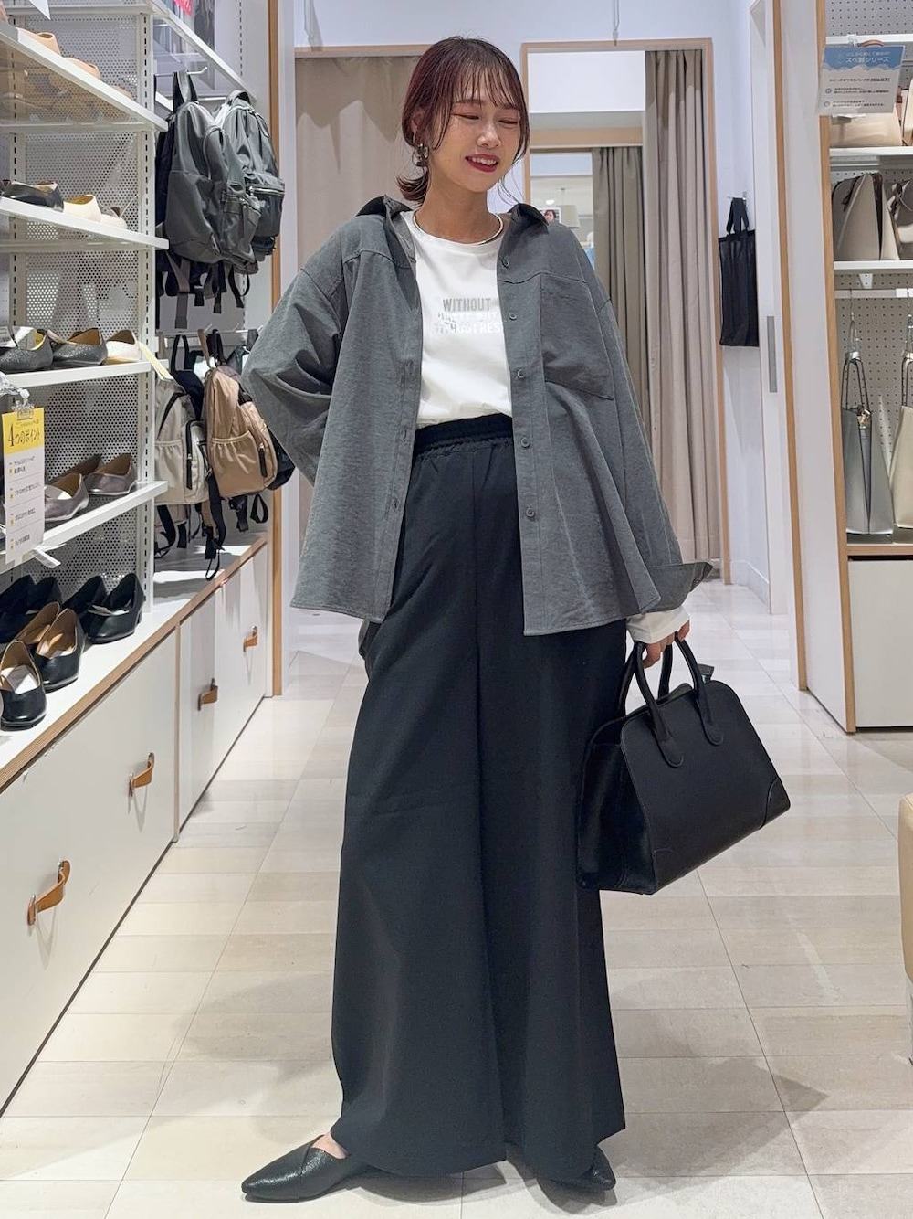 ▼使用アイテムは下からチェック出来ます▼ Instagramも毎日投稿中!質問・相談何でもどうぞ♡ スウェードシャツにロゴTにワイドパンツを合わせて大人カジュアルコーデにしました(^^) スウェード素材のシャツはサッと着るだけで秋らしさアップ!クタッとしていて着膨れもしにくいです! カジュアルなTシャツコーデは黒のワイドパンツでモノトーンでまとめると大人っぽくてオススメ! 【着用サイズ】 シャツ→Mサイズ ゆったりしています! スウェードライク素材ですが薄手で柔らかくて動きやすいです! 一枚でも、羽織としても◎ Tシャツ→Mサイズ いつも通りで◎ 少しツルッとした素材でカジュアル過ぎずに使えます! パンツ→Sサイズ ゆとりがあるのでMサイズだと大きく見えたのでSサイズを選びました!長さもしっかりあります! 足のラインを拾わず細見えします! ウエストは太めでシャーリングゴムなので楽ちん! シューズ→Mサイズ LサイズだとカパカパするのでMサイズを選びました! クッションが効いていて歩きやすいです!
