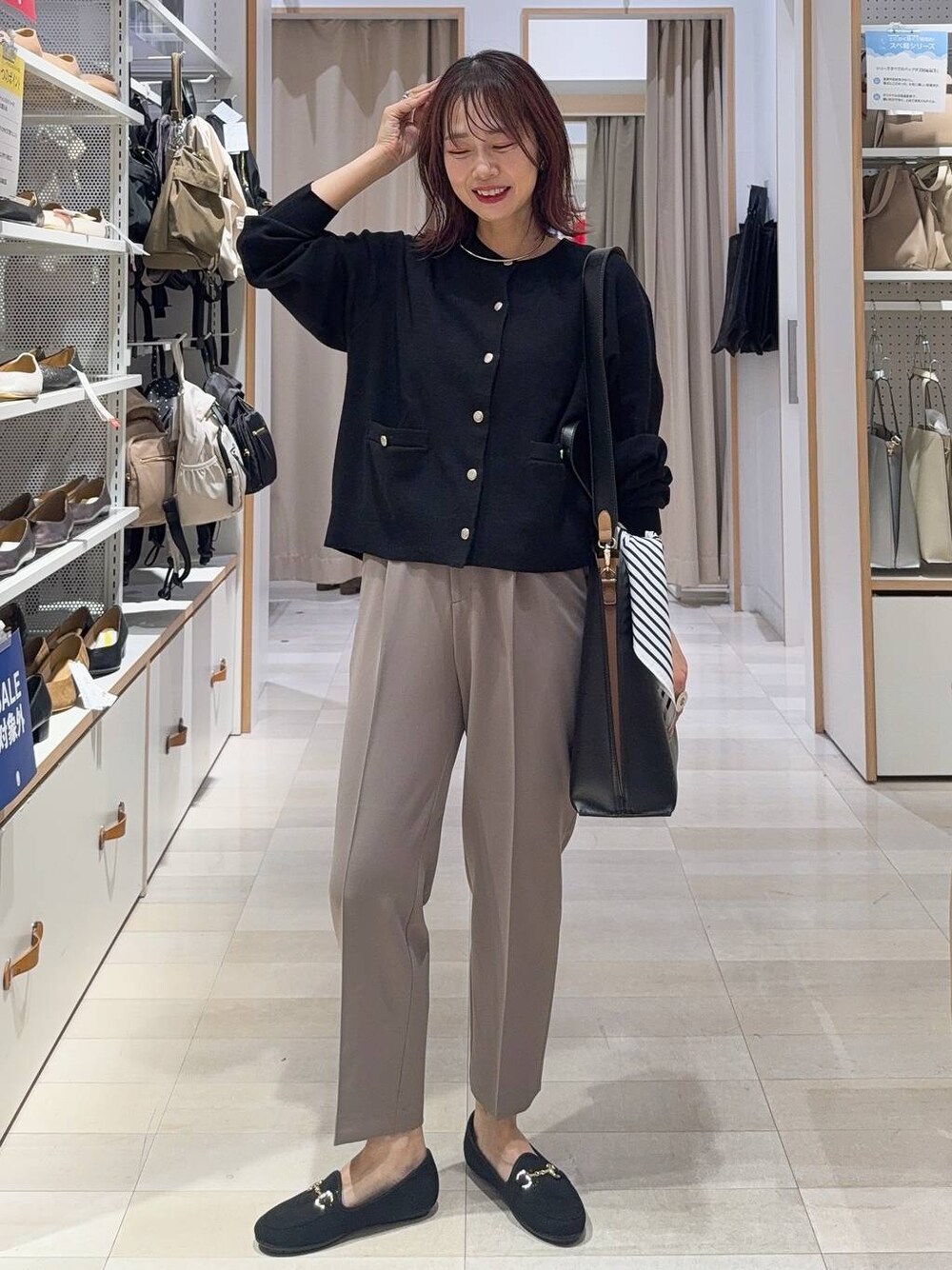 せこ子(GLOBAL WORK イオンモール長久手)のトートバッグ「スペ軽撥水縦A4トート/248213」を使ったコーディネート