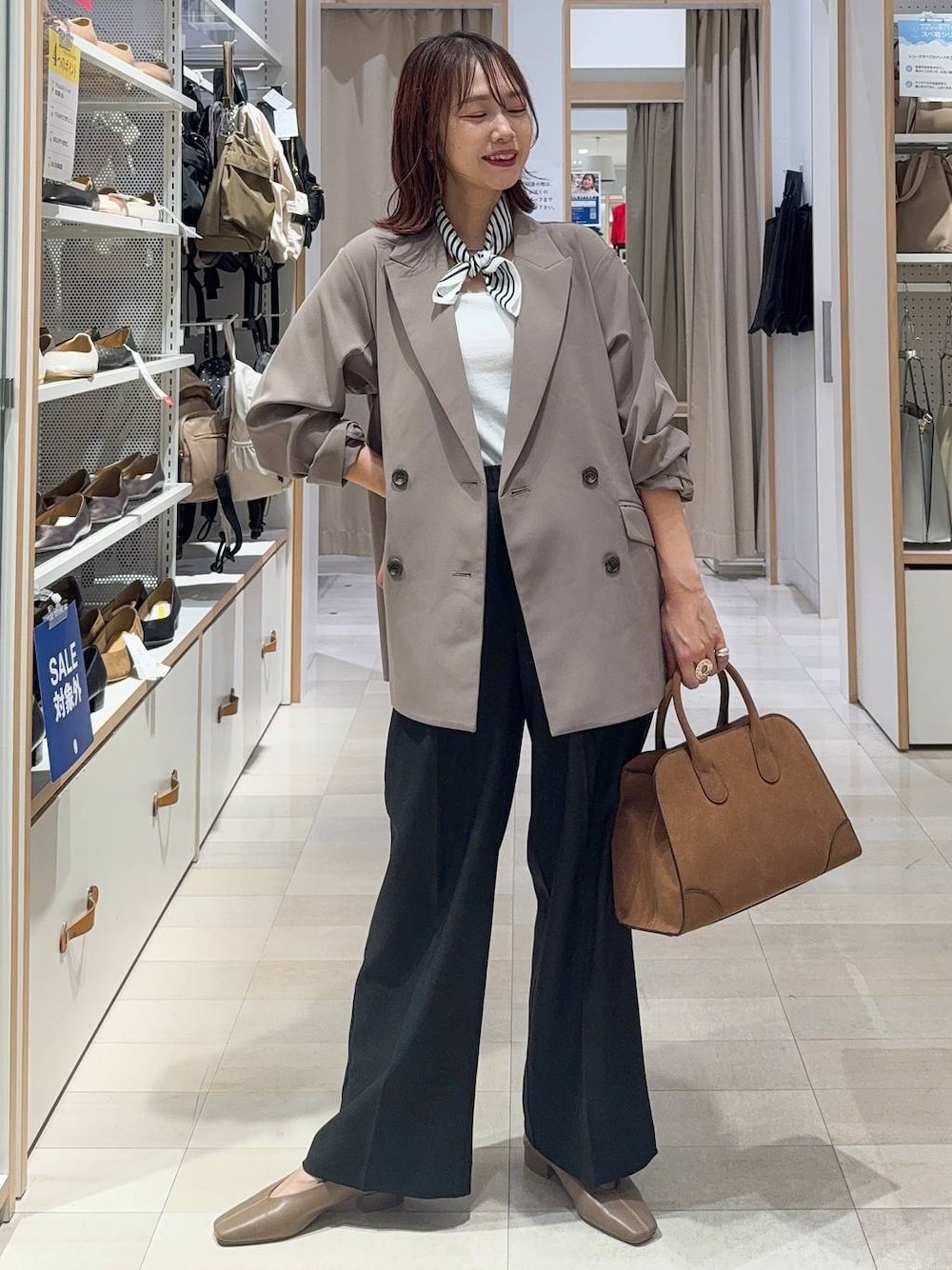 ▼詳しいサイズ感や着心地も記載しています▼ ダブルのジャケットにワイドパンツを合わせてオフィスコーデにしました(^^) モカカラーなのでダブルのデザインでも女性らしい印象です! ワイドパンツと合わせるとかっこよくキマります! 【着用サイズ】 ダブルジャケット→Mサイズ いつも通りで◎ ダブルのデザインでゆったりしたサイズ感です☆ 腰が隠れる長さで体型カバーできます! お洗濯も可能! テロっとしたストレッチのある素材で動きやすいです! カップ付きタンク→Mサイズ サイズ表通りで大丈夫です! カップがしっかりしていて、後ろにゴムがないので段差もできず締め付けも少ないです! パンツ→Mサイズ ウエストはSでも問題なかったのですが、長さとシルエットはMの方が綺麗なのでMサイズを選びました! 程よいワイドシルエットで足が綺麗に見えます! ウエストはゴムで楽ちんですが、お仕事にも使えるような素材とデザインです! シューズ→Mサイズ LサイズだとカパカパするのでMサイズを選びました! 内側がふわふわで暖かいです!