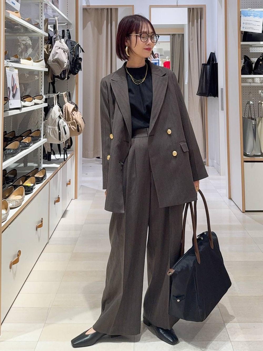 ▼詳しいサイズ感や着心地も記載しています▼ ダブルジャケットに同素材のワイドパンツを合わせてセットアップコーデにしました(^^) お仕事コーデにぴったり!裏地も付いていてしっかり目の生地感なのでキチンとしたい時にも間違いなし! ジャケットもパンツも合わせ方でカジュアル使いにも◎ インナーブラウスは黒はチュール素材でオシャレです! 【着用サイズ】 ジャケット→Mサイズ いつも通りで◎ ダブルのデザインでゆったりしています! お尻が隠れる長さです! 裏地もありしっかりした生地感です! キチンとしたシーンにももちろん◎ ブラウス→Mサイズ いつも通りで◎ ポリエステル素材で皺になりにくいです! 腕部分は透け感があり軽やかです! オケージョンにも使えます! 首元と手首のシャーリングは柔らかくて締め付けがないです! トップス→Mサイズ ゆとりもあってピタッとしないです! 薄手の柔らかいニット素材です! チクチク感なし! パンツ→Mサイズ しっかりゆとりと長さが欲しかったのでMサイズを選びました! ウエスト後ろはゴムなので楽ちんです! しっかりしたスーツのような生地感です! シューズ→Mサイズ LサイズだとカパカパするのでMサイズを選びました! クッションが効いていて歩きやすいです!