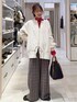 ▼詳しいサイズ感や着心地も記載しています▼ スウェットZIPカーデにチェックのワイドパンツを合わせて大人カジュアルコーデにしました(^^) ゆったりぽわんとしたシルエットがとっても可愛いです!長めの着丈で体型カバーにも!前後で雰囲気が変わります! ゆったりシルエットのチェックパンツはキレイめにもカジュアルにも使いやすいです! チェックパンツは色違いのダークチェリーのZIPカーデとも相性抜群! 【着用サイズ】 アウター→Mサイズ ゆったりしています! お尻が隠れる長さです! 柔らかくて羽織りやすいです! 裏地もしっかりしていて、厚着もしても問題なく羽織れます! ZIPカーデ→フリーサイズ ゆったり大きめです! お尻がスッポリ隠れる長さです! 下のリブは長めでしっかり幅があるのでピタっとしません! 販売中のスウェットよりややしっかりめの生地感です! 前後2WAYで使えます! パンツ→Sサイズ ゆとりがあるのでMサイズだと大きく見えたのでSサイズを選びました!長さもしっかりあります! 足のラインを拾わず細見えします! ウエストは太めでシャーリングゴムなので楽ちん! やや起毛感のあるしっかり生地で温かいです! シューズ→Mサイズ LサイズだとカパカパするのでMサイズを選びました! 厚底ですが軽くて歩きやすいです!