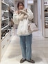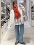 ▼詳しいサイズ感や着心地も記載しています▼ ペプラムカーデにストレートデニムを合わせてカジュアルコーデにしました(^^) カーディガンはヒラヒラしたデザインがとっても可愛い♡パールのボタンで閉めて着てもポイントに!短めなのでペプラムインナーをプラスして体型カバー! アウターはリバーシブルで着回し力◎とっても軽いです! 【着用サイズ】 アウター→レギュラーサイズ ゆったりしています! お尻にかかる丈です! ボア面とナイロン面の2way仕様なので雰囲気を変えて使えます! 厚手でしっかり防寒出来ますが軽くて羽織りやすいです! 裾を絞ってフワっと着ることも出来ます! カーディガン→Mサイズ いつも通りで◎ ヒラヒラした裾のデザインがとても可愛いです! ボタンもパールのデザインでポイントに! ふわふわした素材感でチクチク感は気になりませんでした! 羊毛混で軽くて暖かいです! インナー→Mサイズ お尻が隠れる長さです! デニム→Мサイズ いつもデニムはSサイズを選ぶのですが、着丈が足りなかったのでМサイズを選びました!(ウエストの感じはS、Мそこまで大差なかったです) ウエスト後ろがゴムなので楽に履けます! ストレートなので足のラインを拾わないです! シューズ→Mサイズ LサイズだとカパカパするのでMサイズを選びました! 中がもこもこで暖かいです!